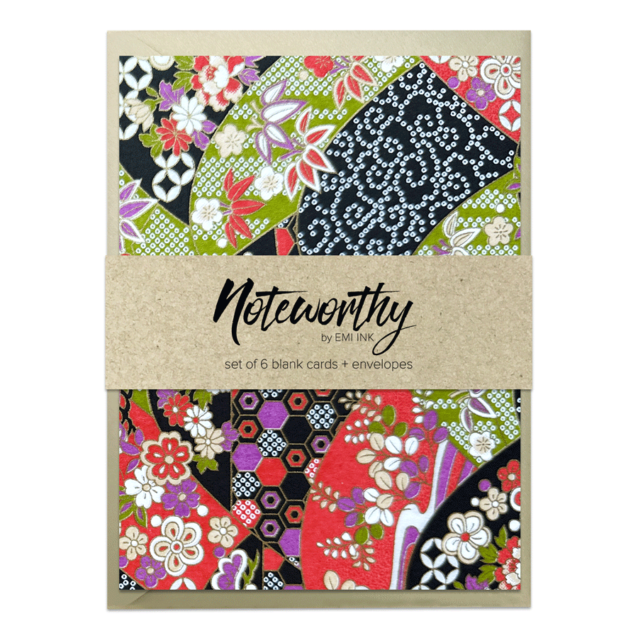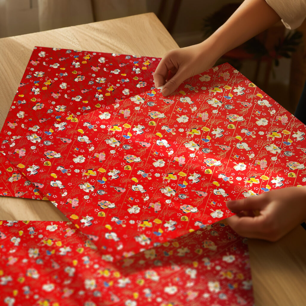 A joyful celebration of movement and optimism, this vibrant washi design features playful horses and traditional motifs on a rich red background with subtle gold accents. The Year of the Horse pattern is available as handcrafted notebooks and note card sets, designed for fresh starts, thoughtful notes, and meaningful moments.