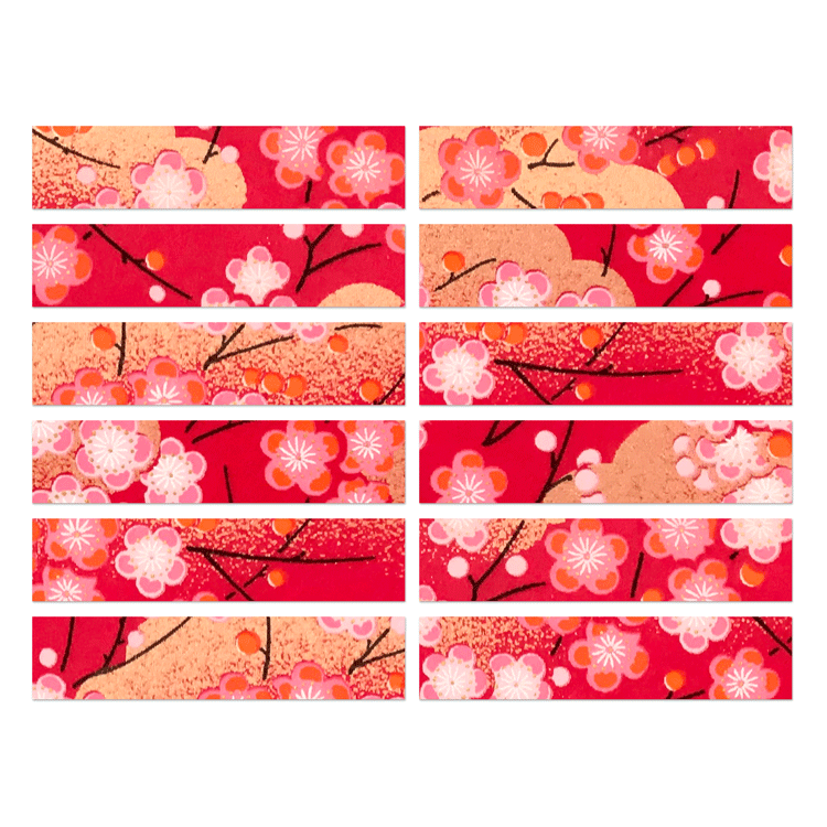Bring the elegance of Japanese chiyogami into your everyday projects. These Washi Tape Strips are hand-cut from traditional decorative washi paper and backed with a permanent, acid-free adhesive. Each strip is ready to peel and press into place—no scissors or glue needed. Use them to add a refined touch to letters, journals, scrapbooks, and more.