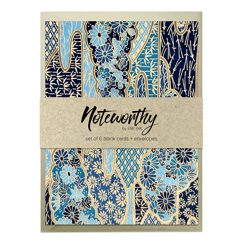 ANSHIN BLUE GOLD Washi Note Card Set