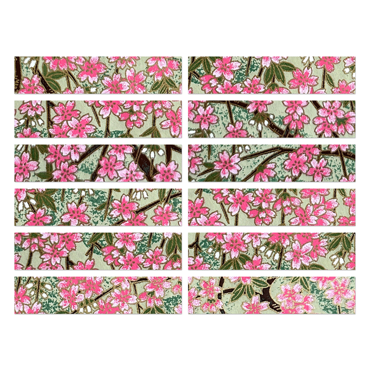 Bring the elegance of Japanese chiyogami into your everyday projects. These Washi Tape Strips are hand-cut from traditional decorative washi paper and backed with a permanent, acid-free adhesive. Each strip is ready to peel and press into place—no scissors or glue needed. Use them to add a refined touch to letters, journals, scrapbooks, and more.