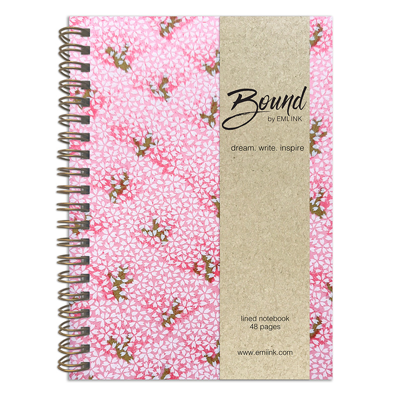 This washi notebook features a soft pink background with scattered sakura blossoms and delicate branching details. Light and graceful, the design creates a calm, airy feel that’s perfect for everyday writing.